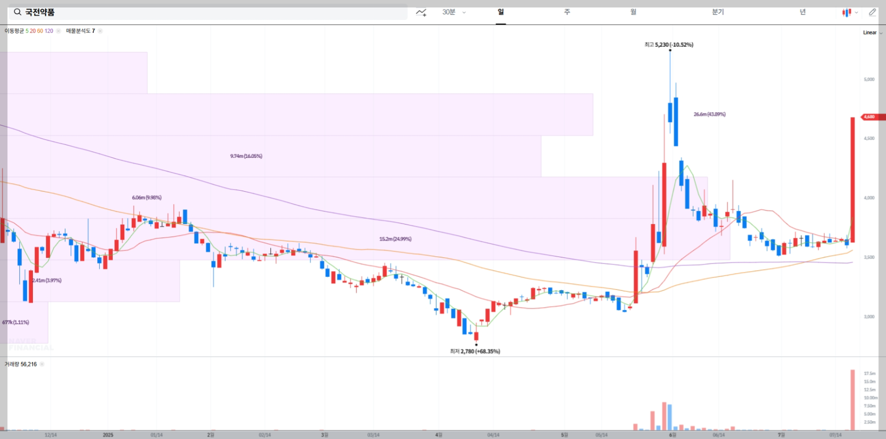 이 중심에는 대장주인 국전약품이 있는데요, 실적 흐름과 주도적인 수급, 중장기 모멘텀 속에서 단기 및 중장기 투자처로 경쟁력을 높이고 있습니다.