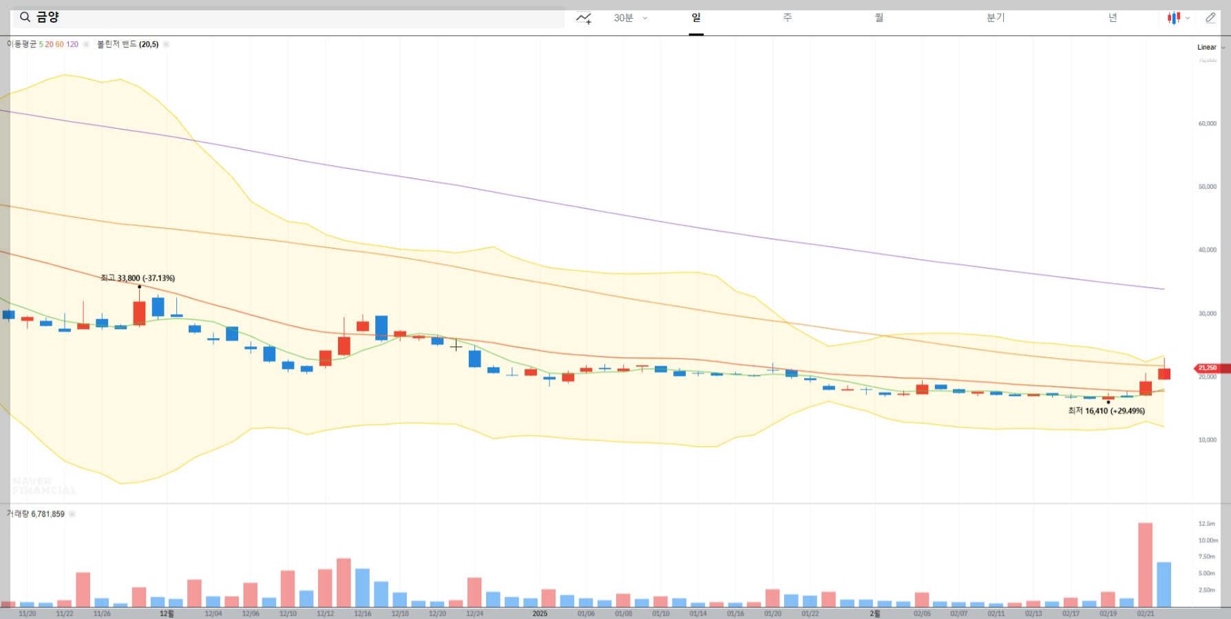 금양 볼린저밴드 매매기법 분석