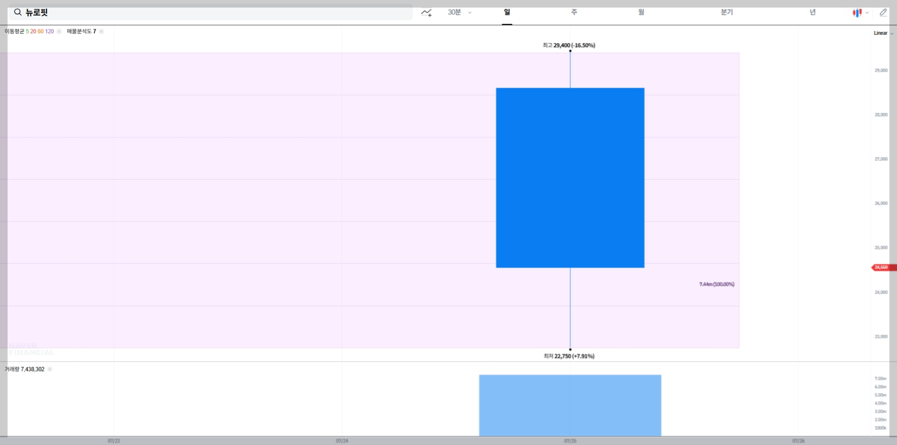 • 골든크로스나 20/60/120일선 이평 돌파 패턴은 상장 초기 데이터 부족으로 추후 관찰 필요.