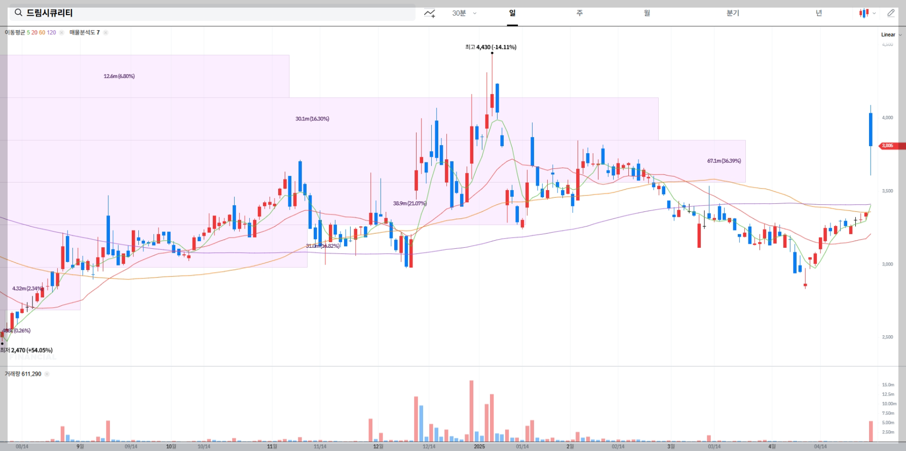 드림시큐리티는 국내 대표 정보보안 및 인증 솔루션 기업으로, 최근 양자암호·딥페이크·생체인증 등 첨단 보안 이슈의 중심에 있습니다. 최근 통신사 해킹 사고, 양자컴퓨팅 기술 부각 등으로 시장의 주목을 받고 있어 투자자들의 관심이 높아지고 있습니다.