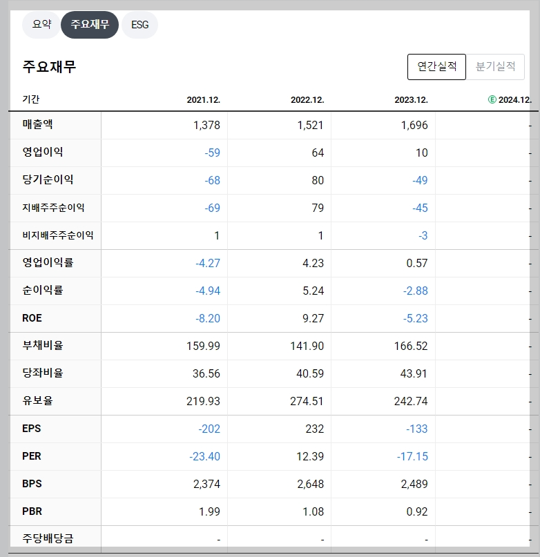 • 매출액: 2023년 기준 1,696억 원 (전년 대비 +11.5%)