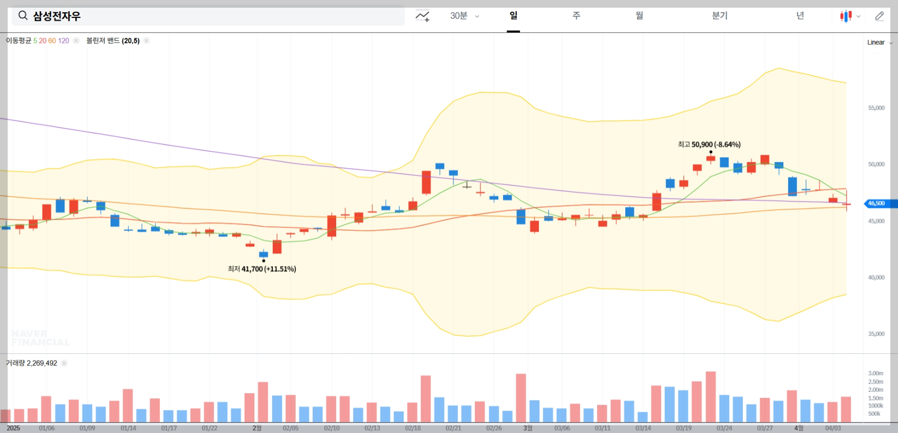 삼성전자우 볼린저밴드 분석