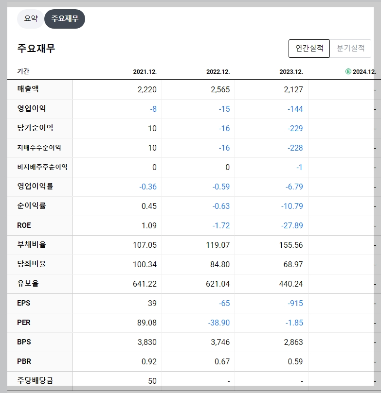 - 2023년 매출액: 2,127억 원 (전년 대비 감소)
