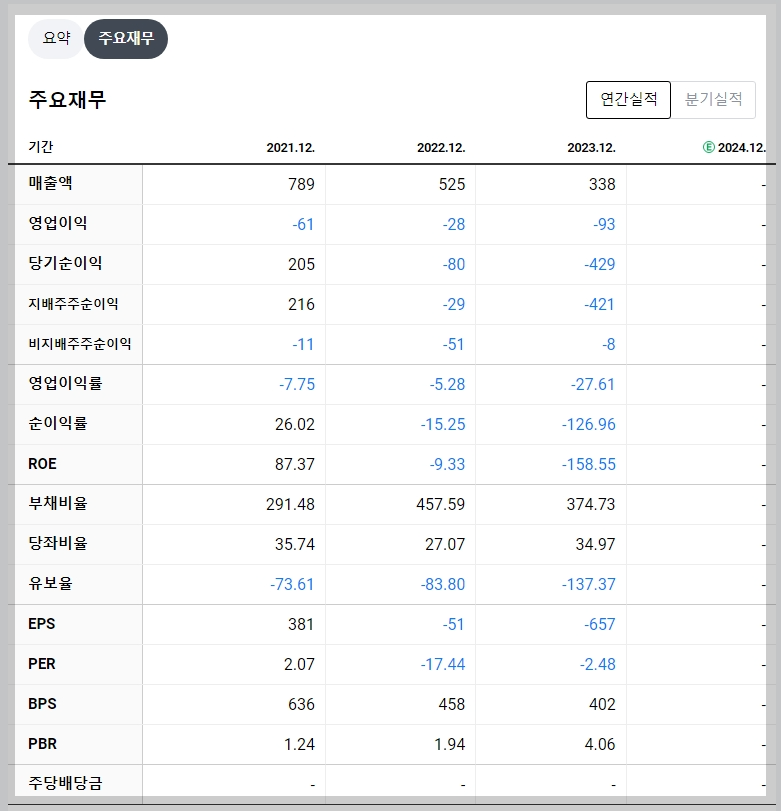 • 2023년 매출액: 338억 원 (-35.62%)