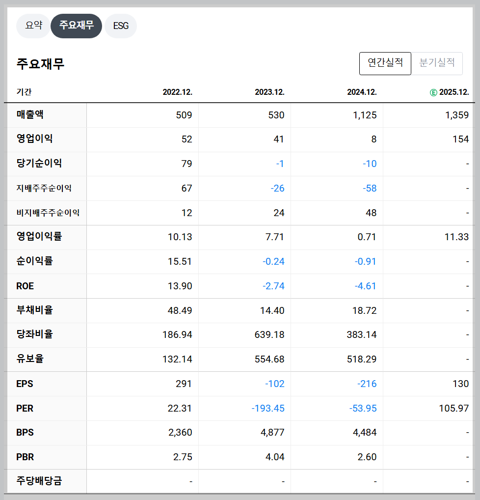 - 매출 및 영업이익: 2024년 별도 기준 매출액 243.7억 원(전년 대비 4.4% 증가), 영업이익 21억 원(전년 대비 64.1% 증가)을 기록했습니다.