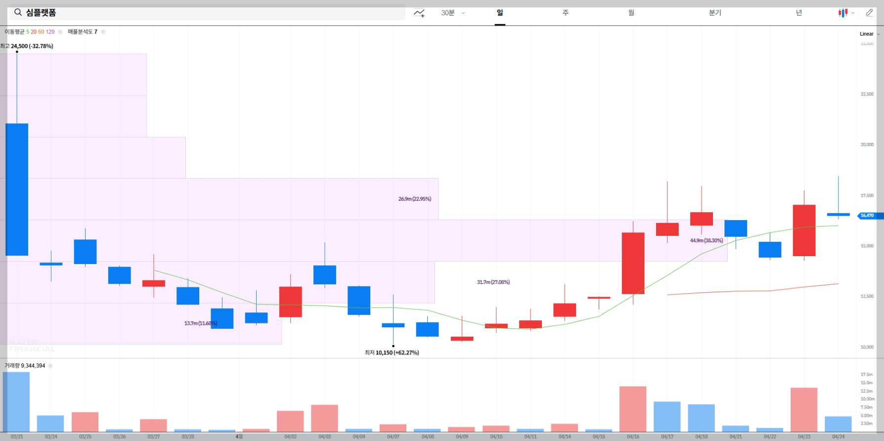 상장 첫날인 3월 21일에는 공모가 15,000원 대비 49% 오른 22,350원까지 상승했으며, 장중 한때 63.33% 오른 24,500원까지 치솟기도 했습니다. 이후 조정을 받았지만, 최근 다시 상승세를 타고 있어 투자자들의 관심이 높아지고 있습니다. 여러분도 이런 심플랫폼 주가의 움직임에 주목하고 계신가요?