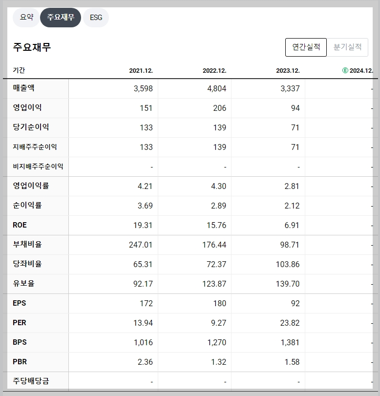• 2023년 매출액: 3,337억 원 (전년 대비 -30.5%)