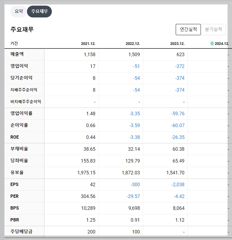 - 지속적인 적자와 부채비율 증가.