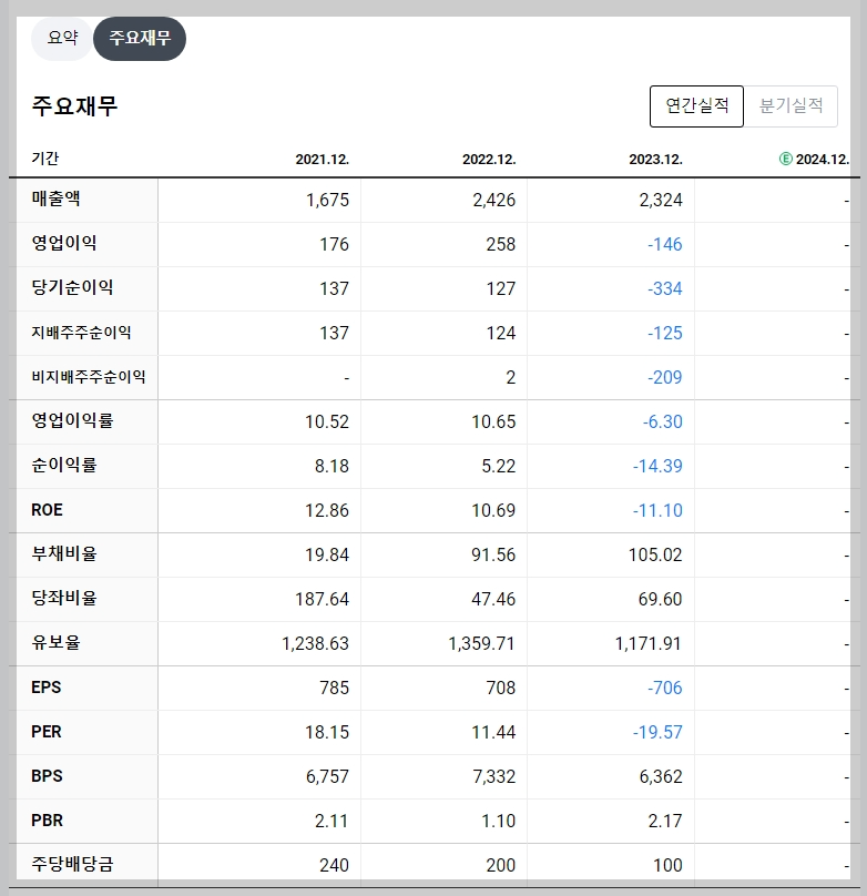 - 리스크: 2023년 적자 전환 및 부채비율 증가로 인해 재무 안정성 악화 우려.