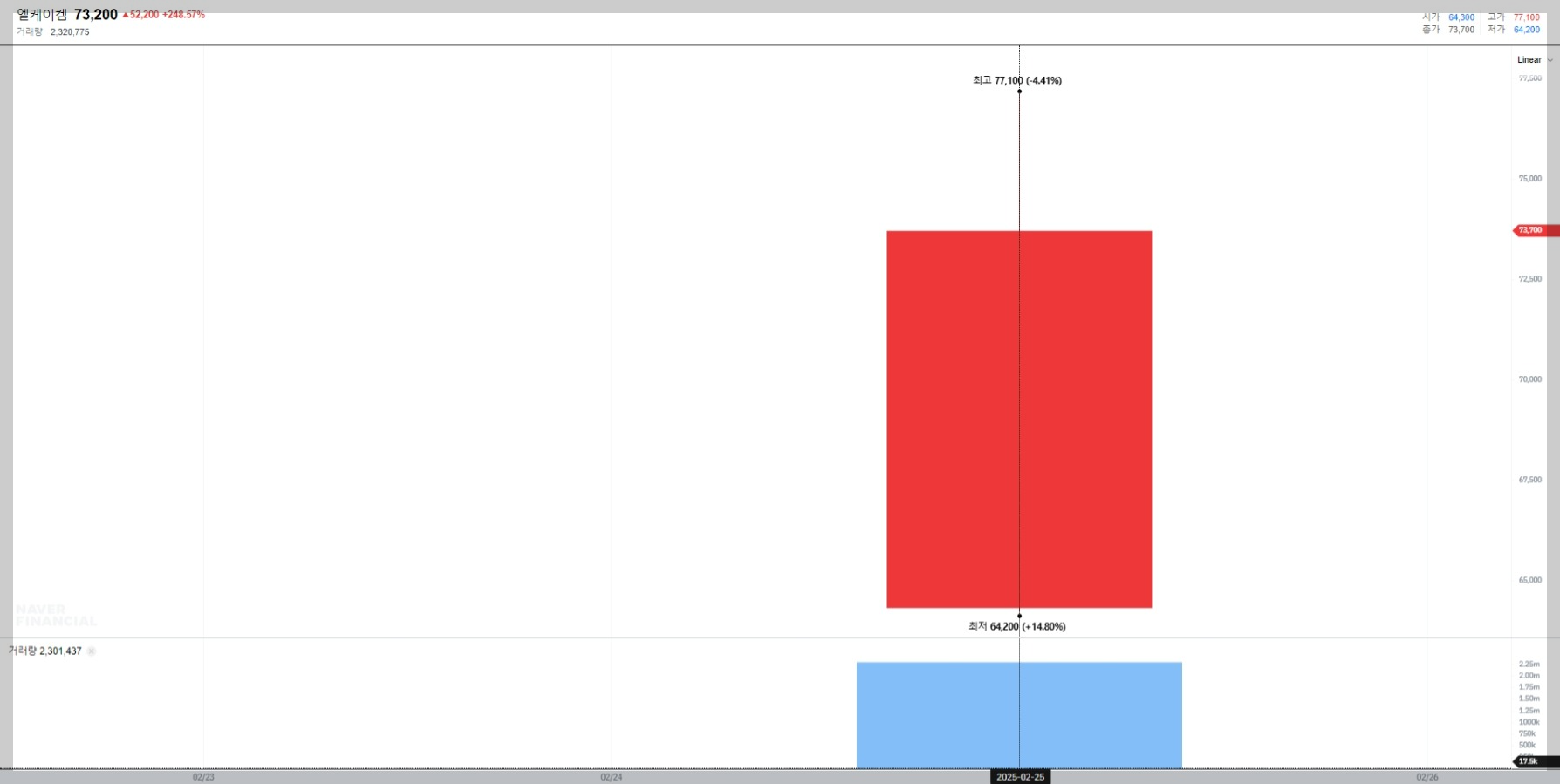 엘케이켐의 현재가는 73,200원으로 공모가 대비 약 248.57% 상승했습니다. 이는 상장 첫날 '따상'을 기록한 후 추가 상승한 결과입니다.