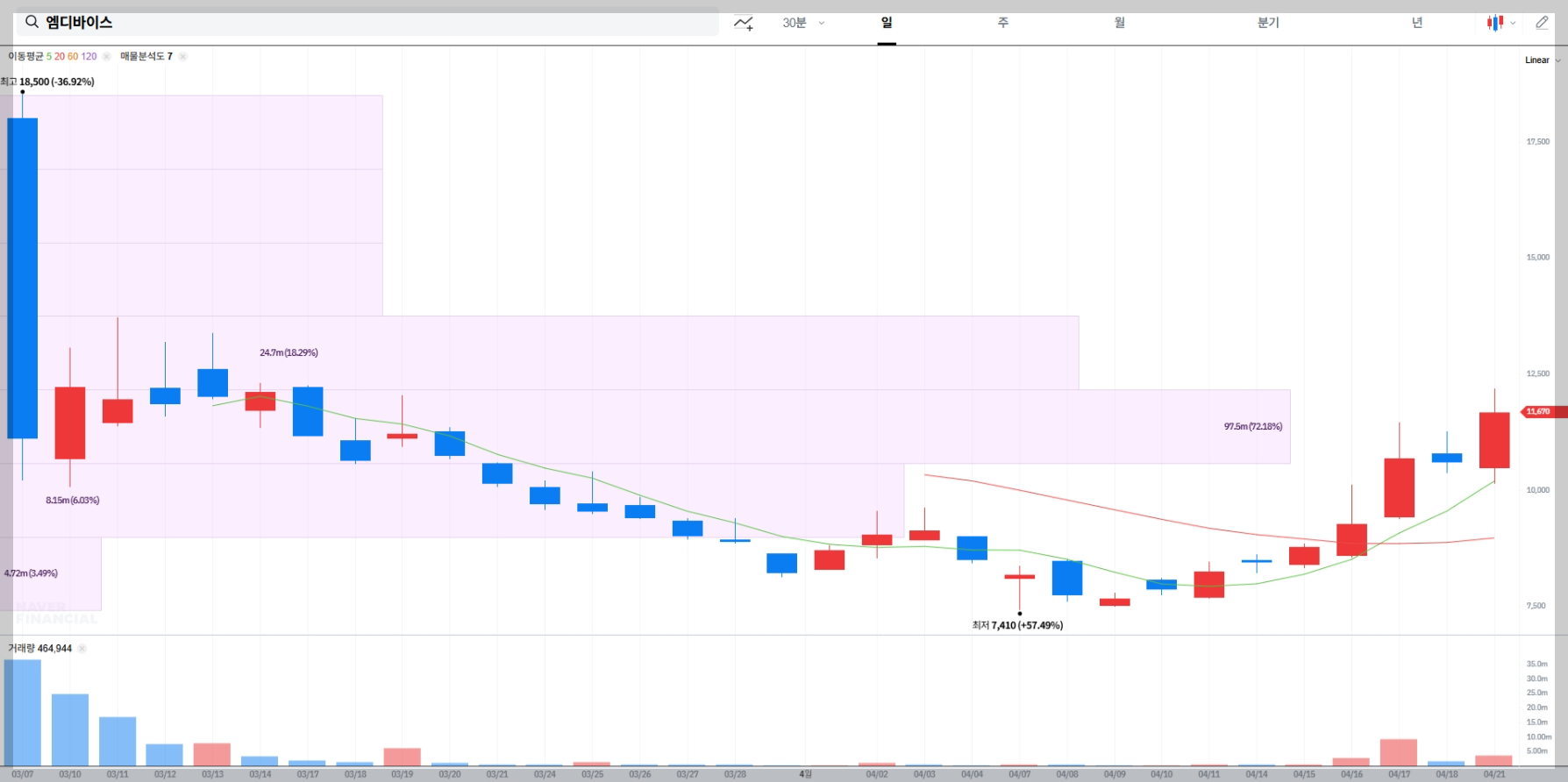 매물대 차트 및 기술적 분석