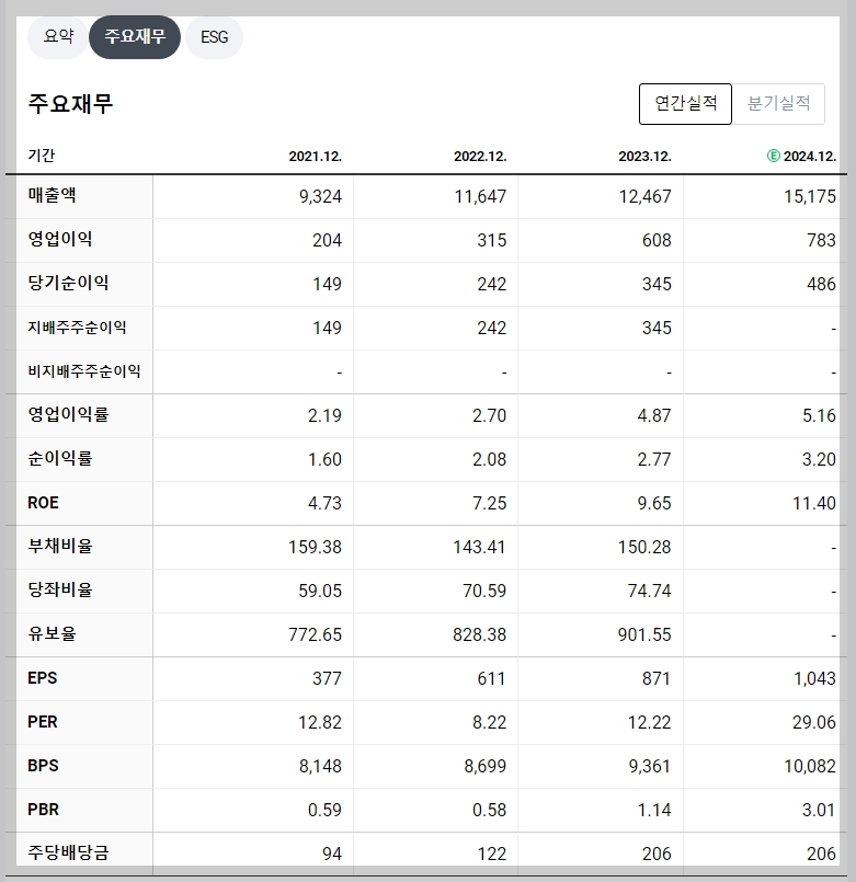 - 2024년 예상 매출: 1조 5,175억 원