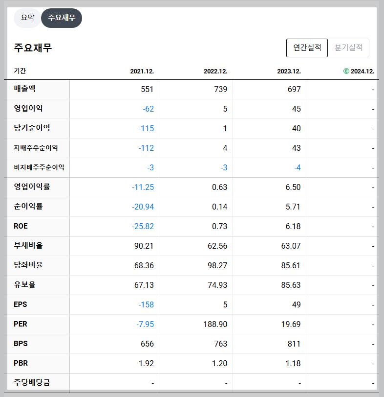 • 2023년 매출액: 697억 원