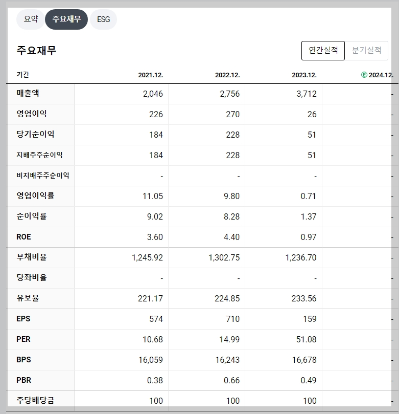 - PBR: 0.49배 (저평가 상태)