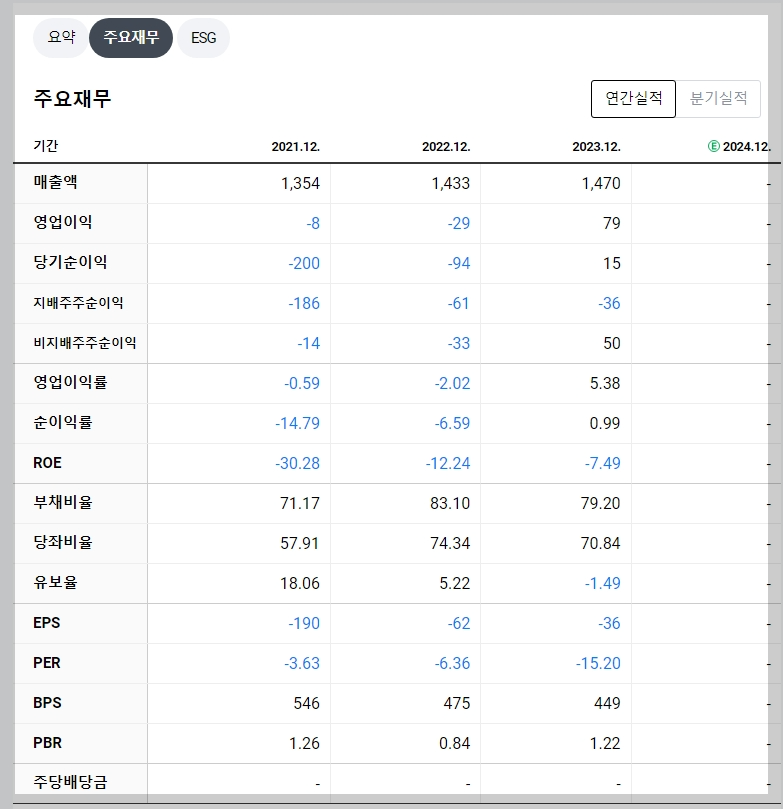 - 2023년 매출액: 1,470억 원 (전년 대비 소폭 증가)