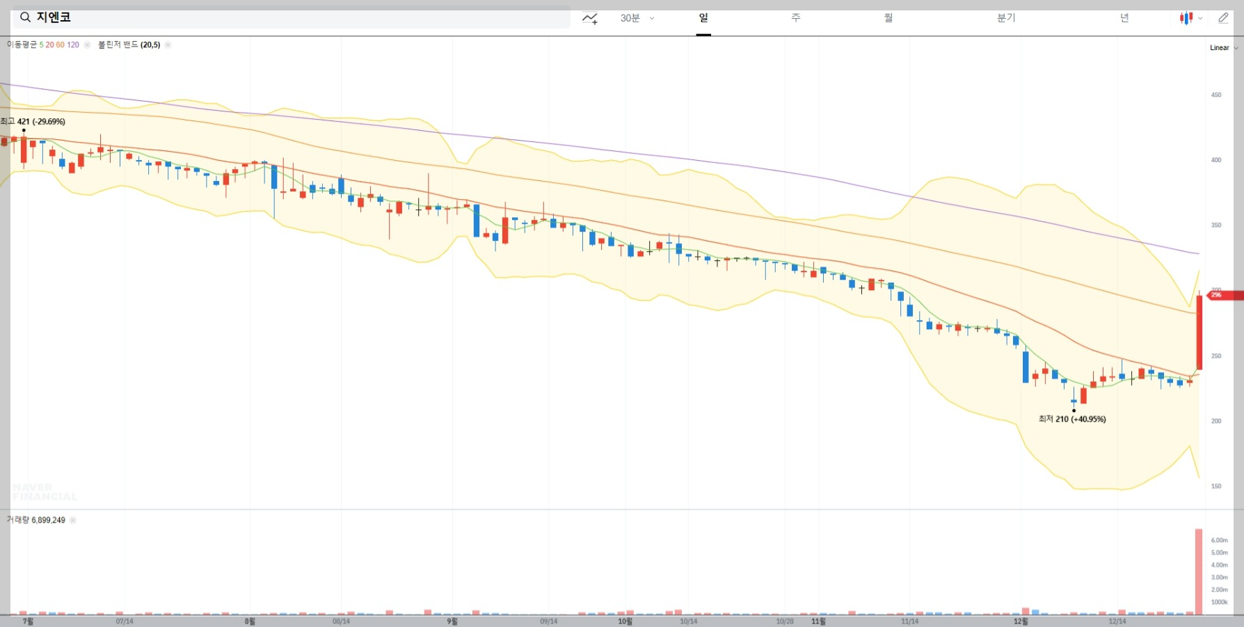 2024년 12월 27일 기준으로 지엔코(065060)는 코스닥 시장에서 주목받고 있는 종목입니다. 이번 글에서는 지엔코의 주가 전망, 배당금, 목표 주가를 분석하고, 볼린저 밴드 매매 기법을 활용한 투자 전략을 제시합니다.