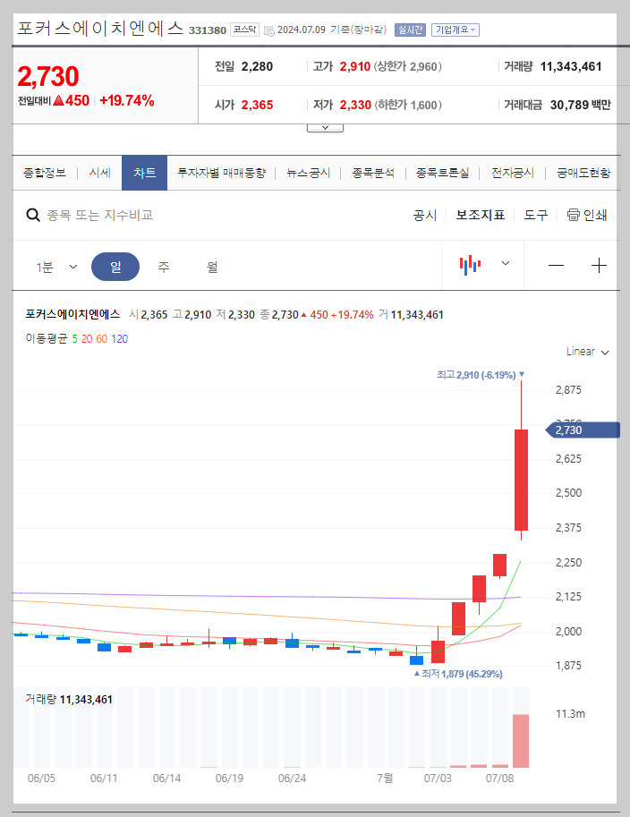 포커스에이치엔에스 주가 분석