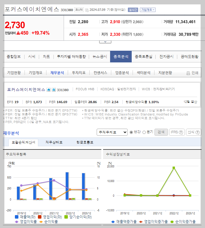 포커스에이치엔에스 주식 결론