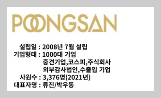 풍산은 1968년 설립된 기업으로, 동(銅·copper) 및 동합금 제품을 기반으로 하는 신동사업과 탄약을 중심으로 한 방위산업 두 가지 핵심 사업을 영위하고 있습니다. 신동사업이 전체 매출의 약 69.07%, 방산부문이 30.93%를 차지하고 있습니다.