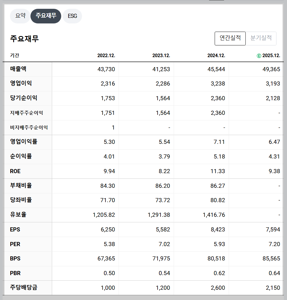 또한 풍산은 배당금을 지속적으로 확대하고 있어 배당 수익률 측면에서도 매력적인 투자처입니다. 2025년 배당금은 2023년 대비 2배 이상 증가한 1주당 2,600원으로 책정되었습니다.