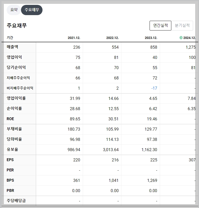 - 2024년 예상 매출액: 1,275억 원