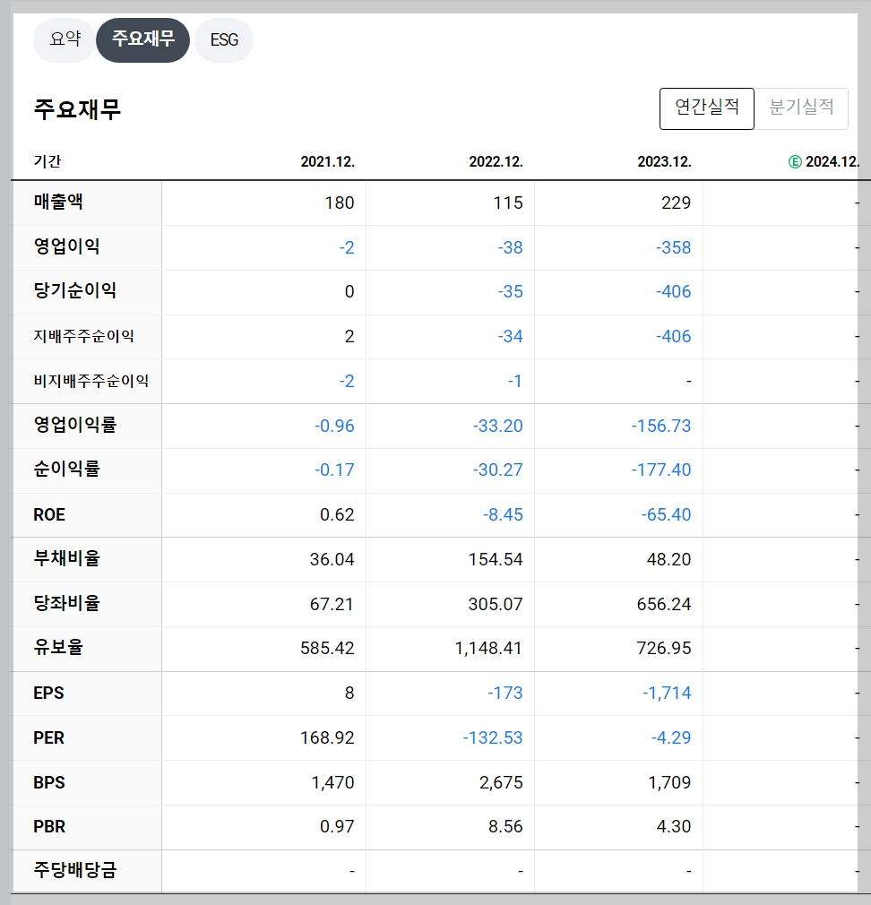 - 2023년 매출액: 229억 원 (전년 대비 99% 증가)