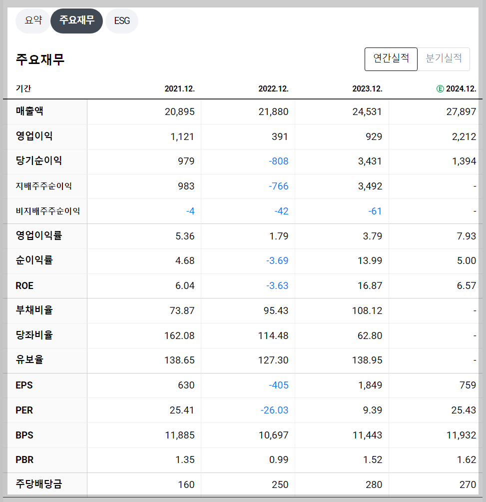 - 매출액: 2조 4,530억원 (전년 대비 12.12% 증가)