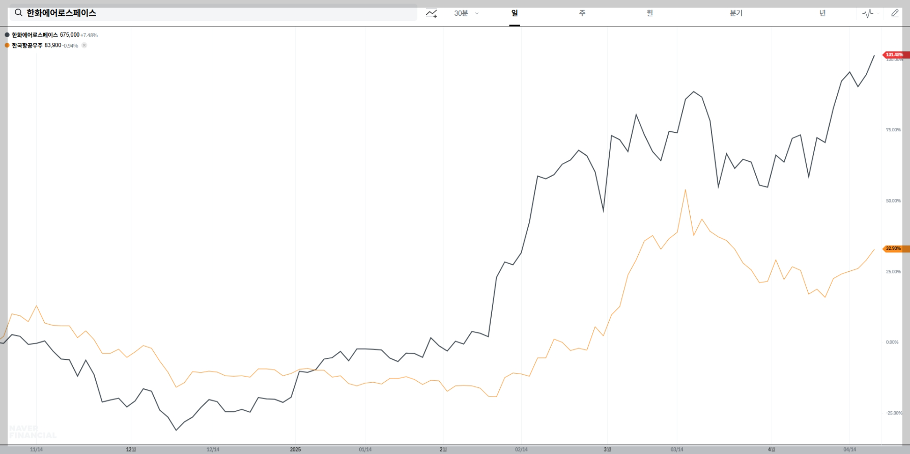 - 글로벌 방위산업 수요 증가: 세계적인 방위산업 수요 증가 전망에 힘입어 한화에어로스페이스의 주가가 상승하고 있습니다. 특히 NATO 회원국들의 국방비 증액 요구와 우크라이나 전쟁 관련 동향이 방산주 상승에 영향을 미치고 있습니다.