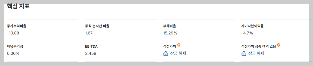 • PER/PBR: PER -11.15, PBR 1.71(2024년 기준)
