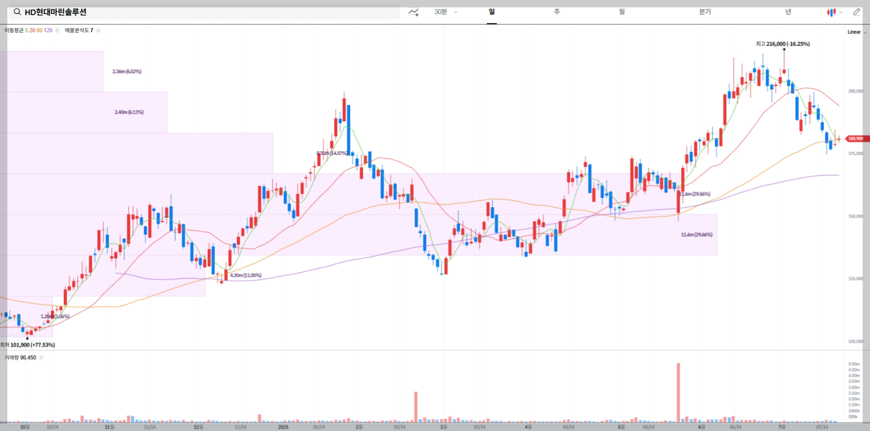 이러한 흐름의 중심에는 대장주로 꼽히는 HD현대마린솔루션이 있으며, 견고한 실적과 긍정적인 수급 흐름이 단기와 중장기 투자처로써의 매력을 키우고 있습니다.