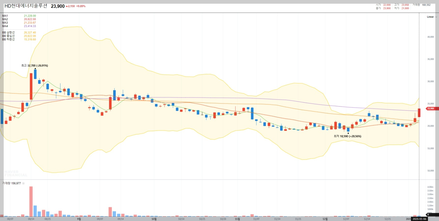 HD현대에너지솔루션 볼린저밴드 매매기법 분석