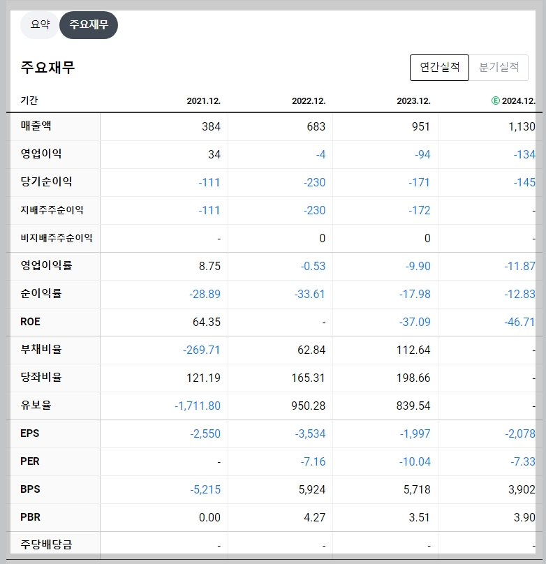 - 영업 손실 지속: 최근 몇 년간 영업 이익이 적자로 전환되었습니다.