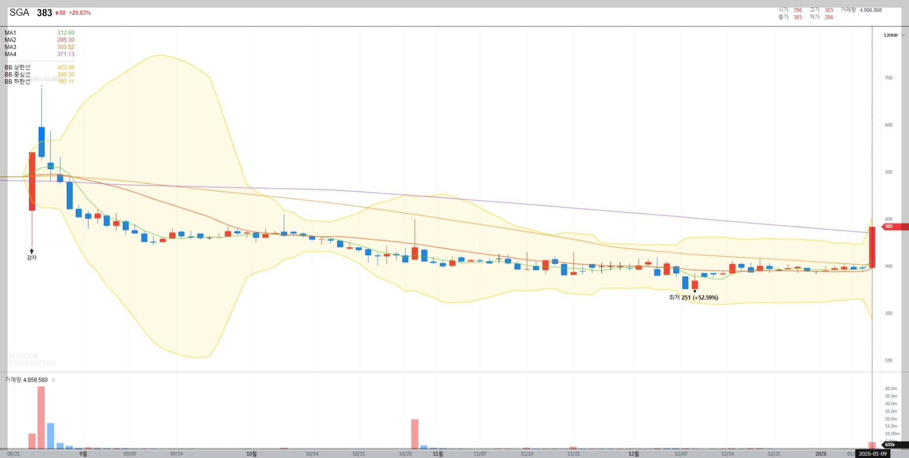2025년 1월 9일 기준으로 SGA의 주가는 급등세를 보이며 투자자들의 관심을 끌고 있습니다. 본 글에서는 SGA의 기업 개요, 최근 뉴스, 현재 주가, 배당금 현황, 볼린저밴드 매매기법 분석, 재무 지표 등을 바탕으로 종합적인 주가 전망과 목표 주가를 제시합니다.