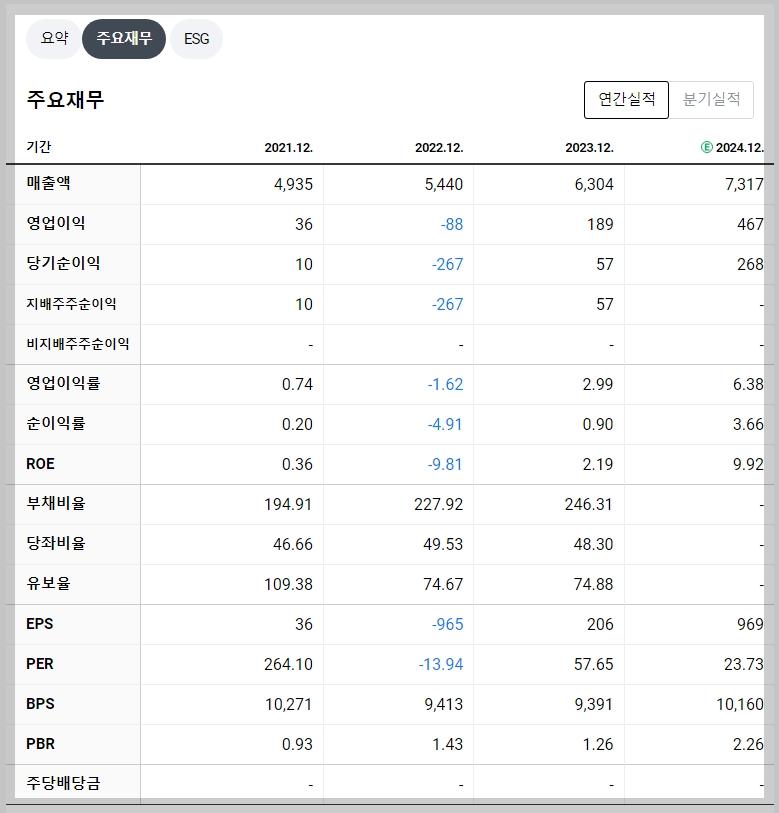 STX엔진의 재무 지표를 살펴보면 2023년 영업이익은 189억 원에서 2024년 예상치인 467억 원으로 크게 증가할 것으로 보입니다. ROE 또한 2023년 2.19%에서 2024년 9.92%로 개선될 전망입니다. 부채비율은 여전히 높지만 안정적인 매출 성장과 이익 개선이 이를 상쇄할 가능성이 큽니다.