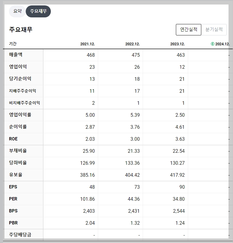 - 2023년 예상 영업이익: 12억 원 (전년 대비 감소)